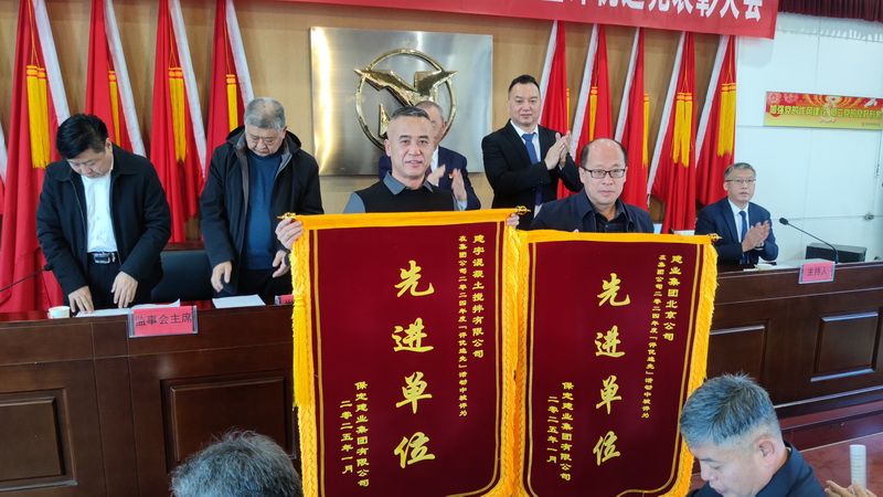 集團(tuán)領(lǐng)導(dǎo)向獲獎(jiǎng)先進(jìn)單位、先進(jìn)個(gè)人頒發(fā)錦旗和證書(shū)。
